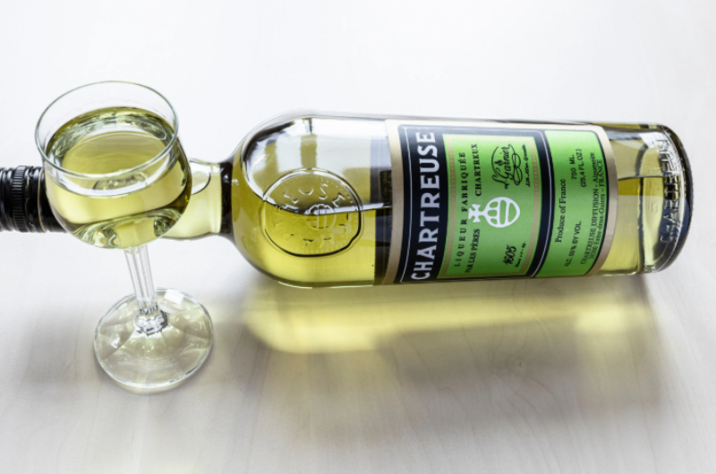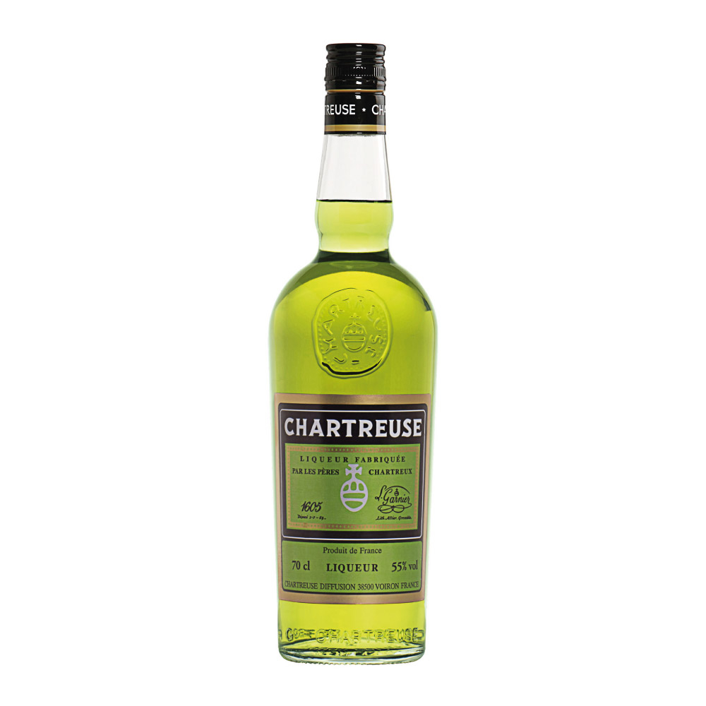 Chartreuse Verde unisce 130 erbe, fiori, radici e spezie, alcol di barbabietola come base, zucchero bianco a dolcificare. L'imbottigliamento è a 55%vol. Invecchia almeno 3 anni in botte grande di rovere francese.