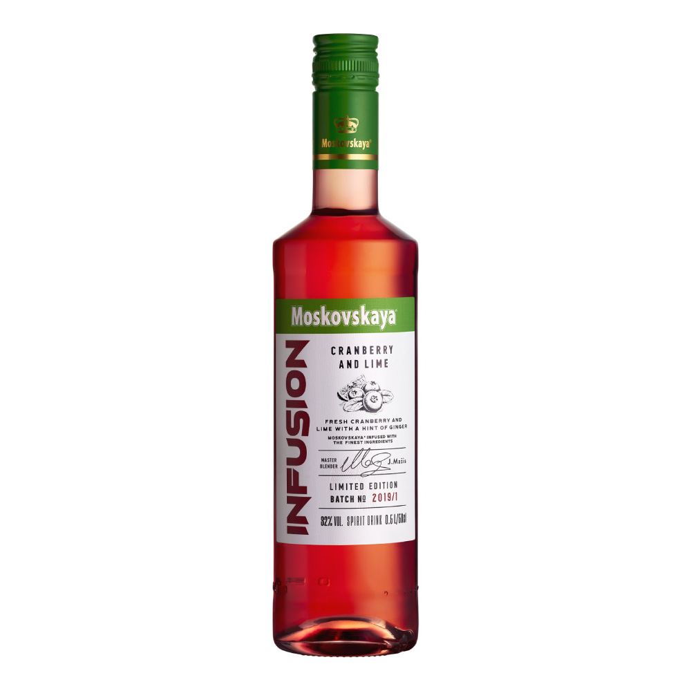 Dopo la distillazione, Moskovskaya Infusion Cranberry and Lime viene infusa con succo di lime e mirtilli rossi.