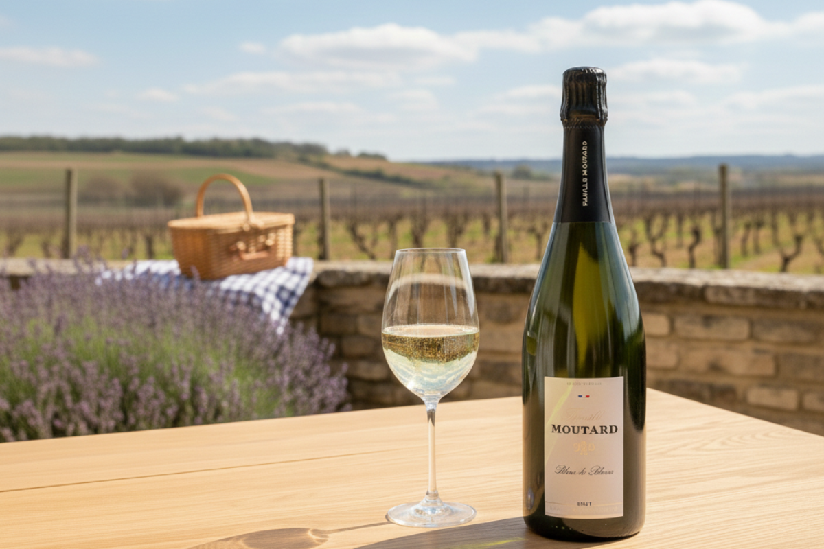 Il Moutard Méthode Traditionnelle Brut Blanc de Blancs è un'eccellenza della cantina Moutard, interamente composto da Chardonnay. Le vigne, situate a Tonnerre, poco a nord di Chablis in Borgogna, vantano una maturità di 20 anni.