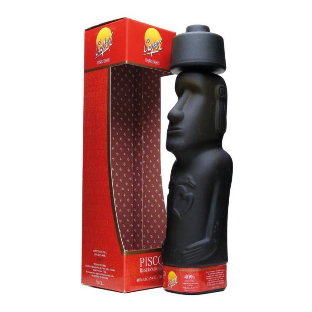 Prodotto con uve 100% Moscatel, un’uva dalla grande espressione aromatica, viene invecchiato per almeno 5 mesi in botti di rovere americana usate. Capel Reservado è un Pisco superiore, sia negli aromi, sia nel gusto. Il colore è intenso e ha un aroma delicate di frutta con un leggero tocco di legno. Al palato è ben bilanciato. La bottiglia, unica nel suo genere, richiama le statue monolitiche Moai dell’Isola di Pasqua.