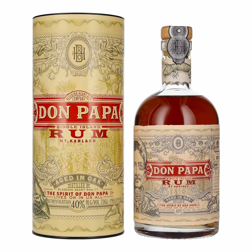 Don Papa è l'originale Single lsland Rum che arriva dalle Filippine. Ispirato da Papa lsio, eroe della Rivoluzione e sciamano dell'Isola di Negros da cui questo Rum proviene. Maturato ai piedi del Monte Kanlaon, Don Papa 7 Anni è invecchiato in botti ex-Bourbon ed ex-Rioja di rovere americano per un profilo più secco e più complesso, prima di essere blendato fino a raggiungere la perfezione dal nostro Master Blender.