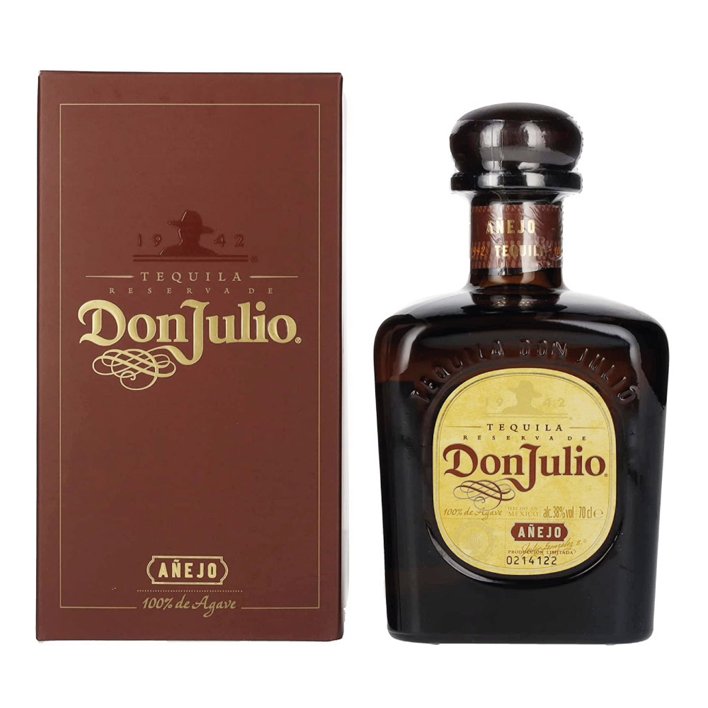 Don Julio Anejo viene prodotto con doppia distillazione e lasciato invecchiare in botti di rovere per 18 mesi. Appare con un colore ambra chiaro e si esprime al naso attraverso aromi erbacei in una combinazione di agrumi freschi come lime, pompelmo e mandarino con un lieve tocco di caramello.